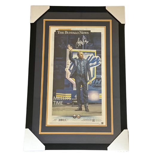 Ryan Miller Signed Buffalo News Front Page Retirement Banner Ceremony 11x22 Newspaper – Professionally Framed Commemorate a historic moment in Buff...