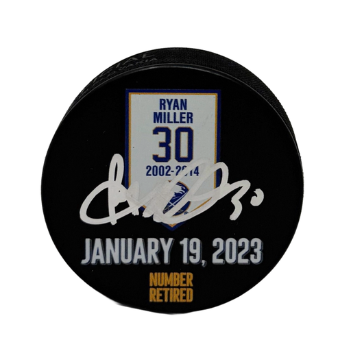 Ryan Miller Signed Buffalo Sabres Retirement Banner Hockey Puck